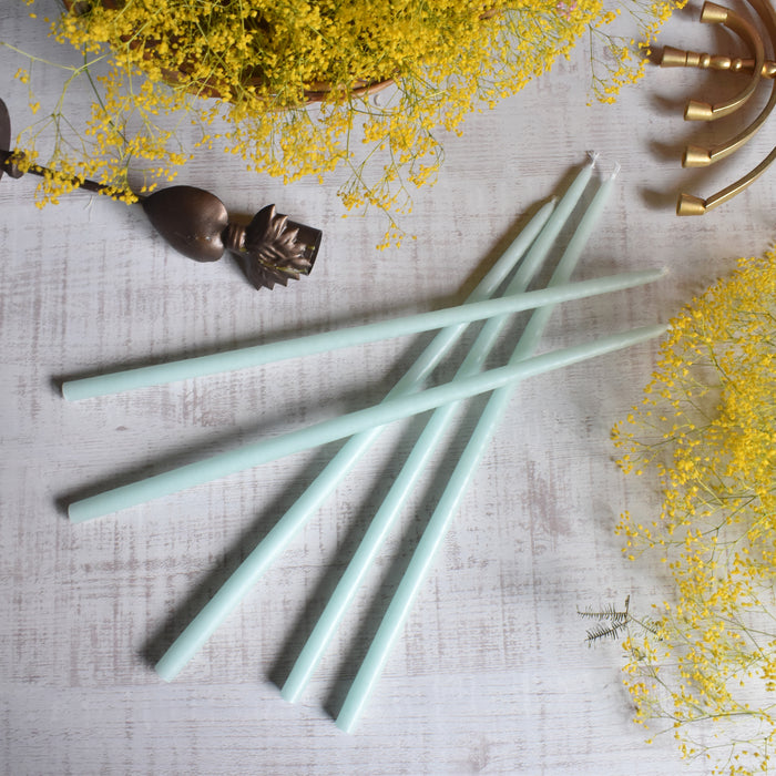 洗練されたニュアンスカラー、セラドンのスリムで華奢なキャンドル