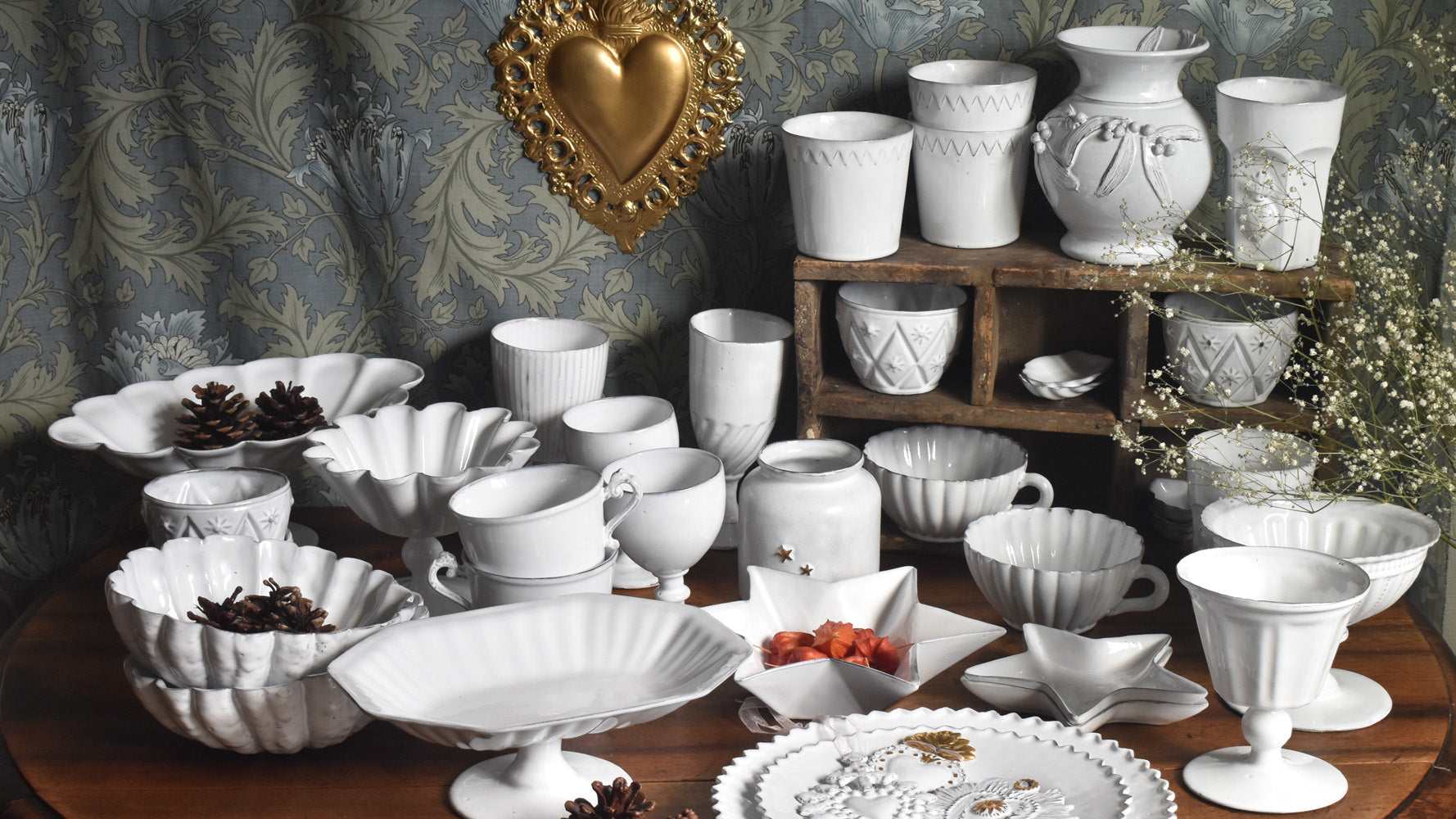 Brocante/蚤の市Saint-amand窯(サンタマン窯)のアンティークプレートGuirlande(ガーランド)シリーズです。 Guirlande(ギルランド)」とは、フランス語で「ガーランド」を意味します。 その名の通り、縁を飾るのは、リボンや花々を編み込んだような優雅な花綱模様。 繊細なドットや曲線で描か...