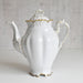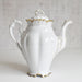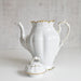 繊細なレリーフが施された白い磁器に、金彩が手描きで描かれており、上品で豪華なコーヒーポットです。