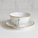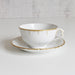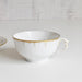 繊細なレリーフが施された白い磁器に、金彩が手描きで描かれており、上品で豪華なカップ&ソーサーです。