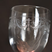 作り手の遊び心や技が光るエッチングが美しいクリスタルグラスです。