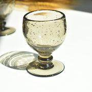手吹きグラスならではの、気泡が魅力的な脚付きグラス。ころんとしたフォルムも可愛らしく魅力的です。