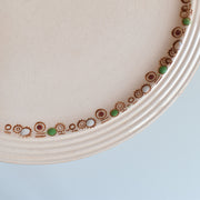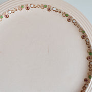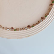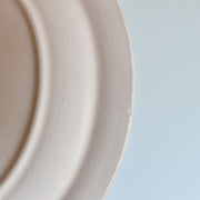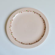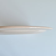 優しいピンク色と、シンプルなフォルムが調和するプレート。レリーフはストライプで空間を引き締めます。