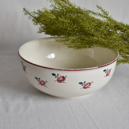 Brocante/蚤の市アンティークのサラダボウル K&Gリュネヴィル釜のSenlisシリーズです。 たっぷりのボウルは、そのフォルムだけでも可愛らしくカンパーニュの雰囲気を味わえます。縁の赤いラインと薔薇の絵柄も魅力的。 薔薇は、蔓や葉はプリントされていますが、薔薇の花は手描きでひとつづつ。 一枚一枚花びら...