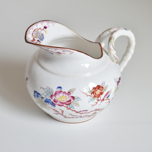 Brocante/蚤の市Sarreguemines窯のアンティーククリーマー Minton柄252番です。 鮮やかな色使いで描かれた花模様。トランスファーの上からハンドペイントで色が載せられ、きめ細やかな手仕事を感じます。 こちらは花とカッコウ(鳥)がモチーフに。ジャポニズムを感じさせるデザインです。 磁器の透き通る...