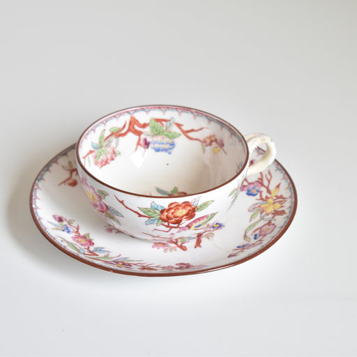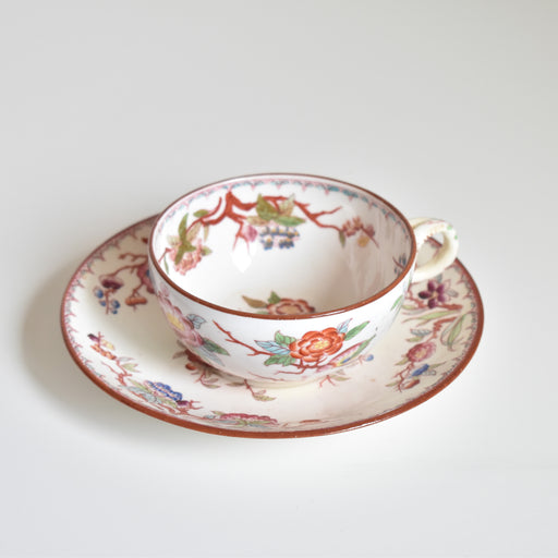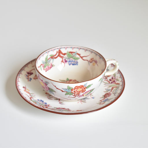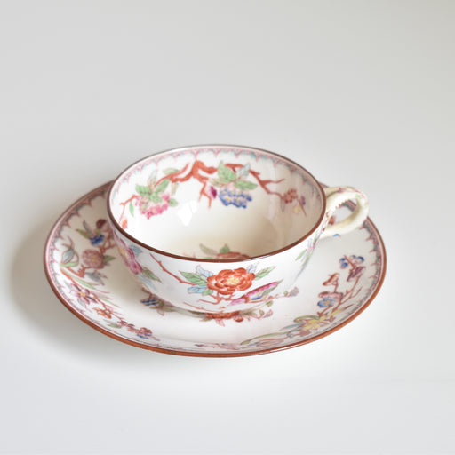 Brocante/蚤の市Sarreguemines窯のアンティークティーカップアンドソーサー Minton柄252番です。 鮮やかな色使いで描かれた花模様。トランスファーの上からハンドペイントで色が載せられ、きめ細やかな手仕事を感じます。 こちらは花とカッコウ(鳥)がモチーフに。ジャポニズムを感じさせるデザインです。...
