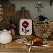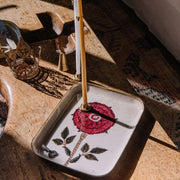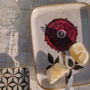 まるで古いキャンバスにエナメルを流し込んだようです。透明感があり美しいトレイです。