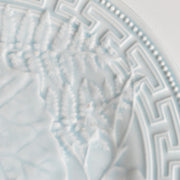 薄いブルーグレーの色合いは、派手すぎず落ち着いた印象で、レリーフの凹凸を一層美しく際立たせています。