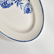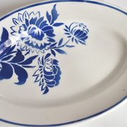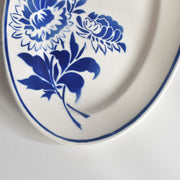 くっきりとした大胆な藍色のステンシルのフラワーモチーフが印象的。