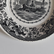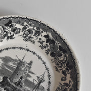 絵付けには、グレーの濃淡で風景や花を描く「グリザイユ」の技法が用いられており、その繊細な描写がエレガントな雰囲気を醸し出しています。