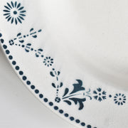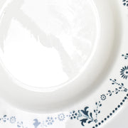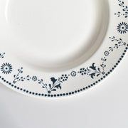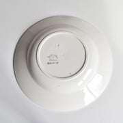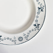 プレートのリム(縁)には、グリーンに近い色合いで描かれた、葉と小さな花(または実)の連なるガーランド模様が一周しています。