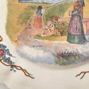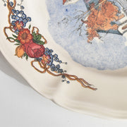 中央の絵柄を囲むように、縁には美しい花束やリボンの装飾が施された、華やかでコレクターにも人気の高い一枚です。