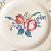 プレート全体に、赤、青、黄色など鮮やかな色彩で描かれた花柄が特徴です。