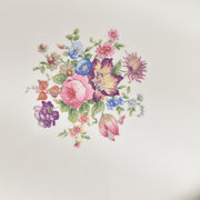 中央と縁を飾る色鮮やかなブーケは、眺めているだけで心が浮き立つような美しさ。
