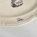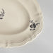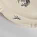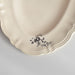 人気の花リム(フリル状の縁)が施された、温かみのあるクリームがかったアイボリー色の美しいプレートをベースに、シックな黒のトランスファー(転写)プリントが際立っています。
