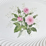 白磁の肌に、淡いピンク色の薔薇と、可憐な白い小花が丁寧に描かれています。