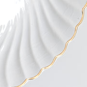 お皿全体を縁取るように施された、緩やかな波のようなレリーフと、上品なゴールドのラインが、さらにその美しさを際立たせています。