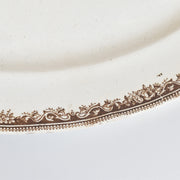 クリーム色の素地に、温かみのあるブラウンでクラシカルなメダリオン模様と装飾的な縁取りが施されています。