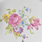 中央に咲き誇る花々は、ピンク、紫、黄色、水色と、豊かな色彩で食卓を華やかに演出。