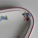 デザインは、中心と縁周りに可憐なブーケのような小花が手描き風に散らされ、縁のシックなワインレッドのラインが全体のデザインを引き締め、