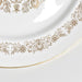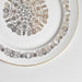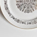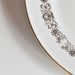 中央には見事な花柄のメダリオン、その周りには繊細な縁取りの模様、そして薄い金の縁。