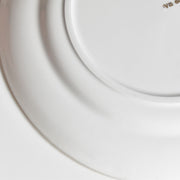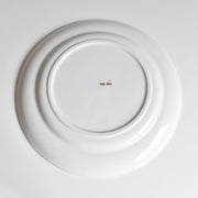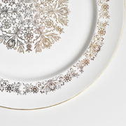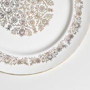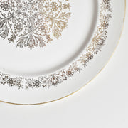 中央には見事な花柄のメダリオン、その周りには繊細な縁取りの模様、そして薄い金の縁。