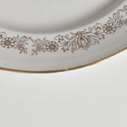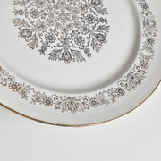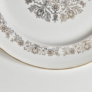 中央には見事な花柄のメダリオン、その周りには繊細な縁取りの模様、そして薄い金の縁。