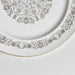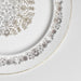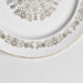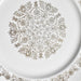 中央には見事な花柄のメダリオン、その周りには繊細な縁取りの模様、そして薄い金の縁。