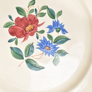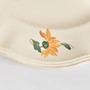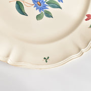 花リムのプレートに手描きで色とりどりの花のがあしらわれています。