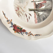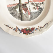 こちらの深皿には、雪に覆われた冬の景色と、赤い屋根の教会が描かれた情緒深い風景です。