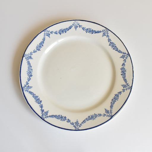 Brocante/蚤の市Creil & Montereau窯のアンティークのプレート Service Flandreシリーズです 縁に可愛いガーランドがスタンプで施されています。シンプルでありながら素敵なプレートです。 状態:欠けやヒビがなくいい状態です。(見込みの真ん中に少し凸凹していますが釉薬がかか...