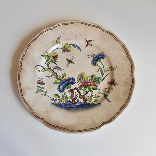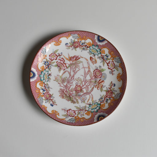 Brocante/蚤の市Sarreguemines窯のアンティークソーサー Minton柄216番です。 鮮やかな色使いで描かれたきめ細やかな花模様。 こちらはインドの花と蝶々がモチーフにされ、エスニックな雰囲気を感じさせます。 磁器の透き通る美しさと生命力溢れる花々に魅了されるシリーズです。 状態:絵柄が少し消えて...