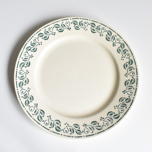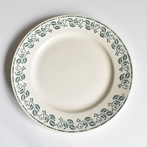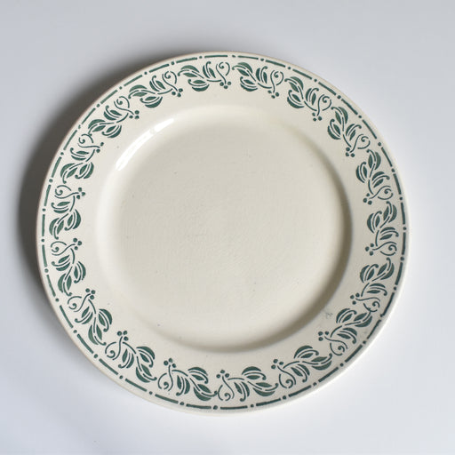 Brocante/蚤の市Choisy-Le-Roi窯のアンティークプレートです。 グリーンのハンドペイントのステンシルのガーランドが施されているシンプルでありながら素敵なシリーズです。 状態:貫入が見られますが、欠けやひびがなく使用感もほとんど感じられなくてとてもいい状態です。 サイズ:直径23cm 高さ2c...