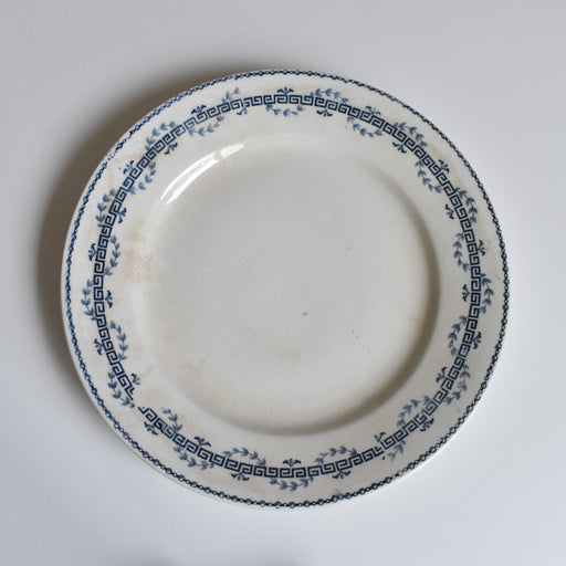 Brocante/蚤の市Gien窯のアンティークプレート Austerlitzシリーズです。 細やかな貫入とシミが広がり、アンティークの風合いをたっぷりと楽しませてくれるAusterlitzシリーズ。 ローリエのような形の可愛らしいリーフ模様が雷紋模様を伝うユニークなデザインが魅力的です。 状態:全体に貫入が広...