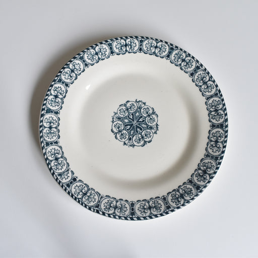 Brocante/蚤の市素朴な美しさと時間の経過が織りなす趣が魅力のアンティークプレート。窯元は特定できませんが、フランスの老舗サルグミンヌ窯で見られる同柄のレリーフが、その確かな歴史を感じさせます。 このプレートの最大の魅力は、リム(縁)部分にあしらわれた繊細なレリーフです。波打つような曲線と、麦の穂を思わせるよう...