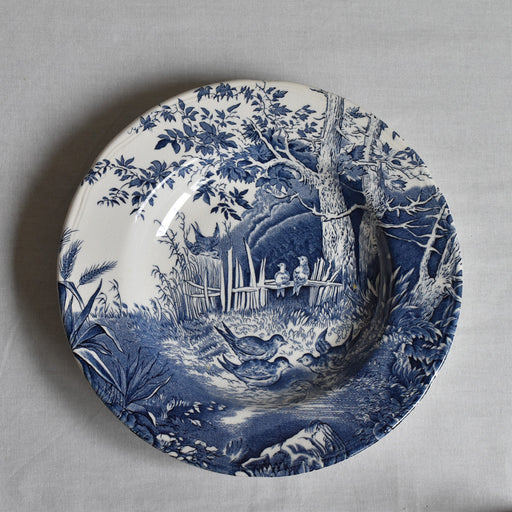 Brocante/蚤の市リュネヴィル Grand Feu Traditionの深皿プレートです。 鳥たちのさえずり、木の葉や草花が揺れる音が聞こえてきそうな、とても美しい絵皿です。深皿なので、奥行きができて絵により遠近感がうまれます。 縁取りには、2本の凹凸のライン。見ただけでは気づきにくいですが、手にとった時に感じ...