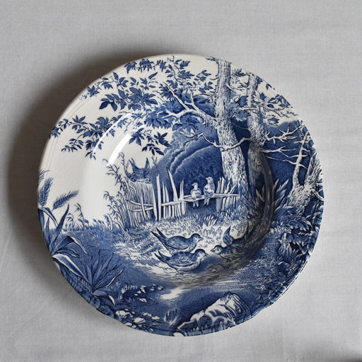Brocante/蚤の市リュネヴィル Grand Feu Traditionの深皿プレートです。 鳥たちのさえずり、木の葉や草花が揺れる音が聞こえてきそうな、とても美しい絵皿です。深皿なので、奥行きができて絵により遠近感がうまれます。 縁取りには、2本の凹凸のライン。見ただけでは気づきにくいですが、手にとった時に感...