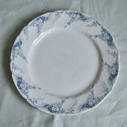 Brocante/蚤の市U&Cサルグミンヌ のデザートプレート です。 1850年頃のものです。オープンワークのリムにパニエ模様があり、可愛らしいレースとカゴが合わさったような可憐なデザインです。 シンプルな色ですが、縁取りの美しさが載せたものをより映えさせさす。 プレートの表には、作られた時にできた傷、小さ...