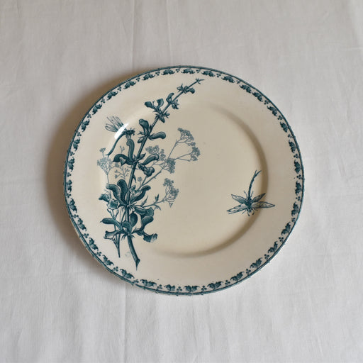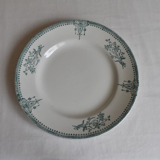Saint-amand釜のアンティークプレート4003番の柄になります。 お城や聖堂のピナクル(小尖塔)を彷彿とさせるデザインに、華奢なラインで描かれたアザミは華を添えます。 優しく柔らかなグリーンが爽やかでフレッシュな印象のを与える素敵な一品です。 状態:多少のカトラリー跡が見られます。 サ...