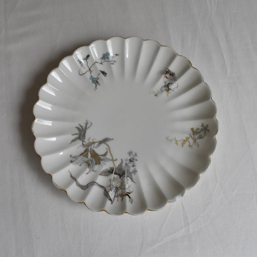 アンティークデザートプレート アビランド 水彩画のような風合いと、繊細で華奢な花々が美しいプレートです。 細やかな花リムとレリーフが可憐さも感じさせ魅力的。 アクセサリートレイとして使用しても素敵です。   ランスファー&一部手描き   状態:金彩が薄くなっていますまたプリントが切れている...