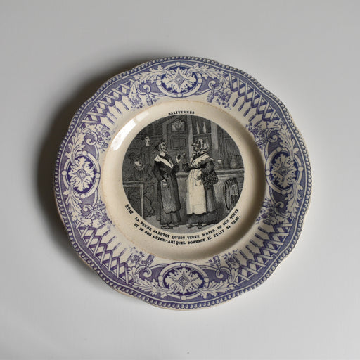Brocante/蚤の市Creil et Montereau窯のアンティークデザートプレート”Balivernes” シリーズです。 ”Balivernes” はナンセンスを意味し、100年以上前のお笑いを絵皿にしたシリーズです。 文章と絵柄を合わせながらじっくりとアイロニやユーモアをお楽しみくださませ。 壁や棚...