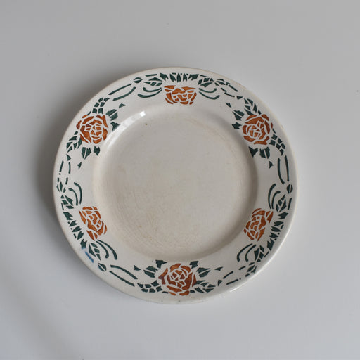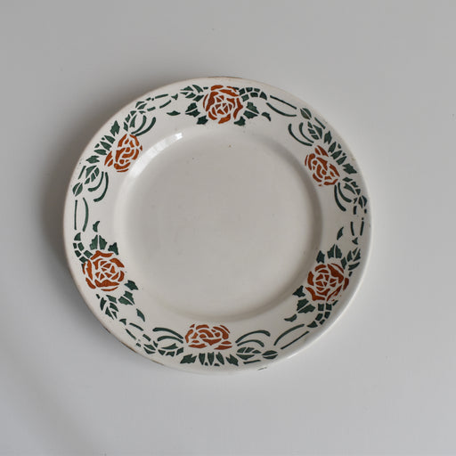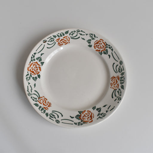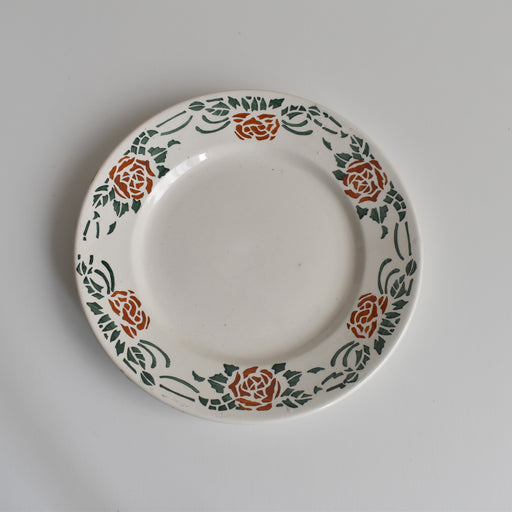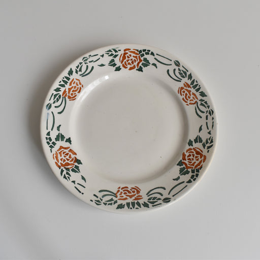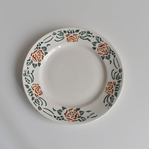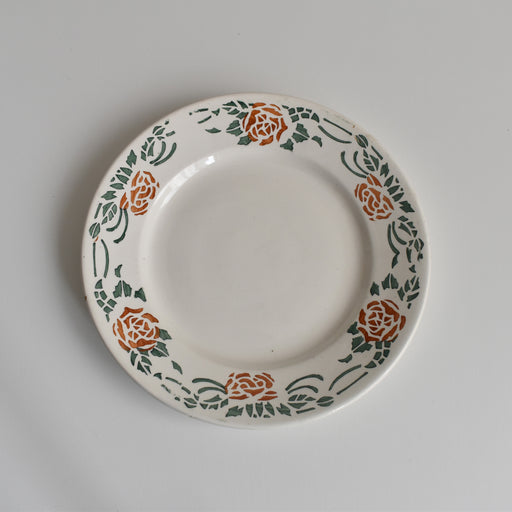 Brocante/蚤の市Faiencerie Nouvelle Givors窯のヴィンテージプレートRoxanneシリーズです。 ”Roxanne”とは、フランスで用いられる女性の名前です。 穏やかで優しさに溢れる素敵な女性をイメージさせるようなバラの絵柄。縁を美しく彩ります。 ステンシルで描かれた薔薇模様。指先に心...