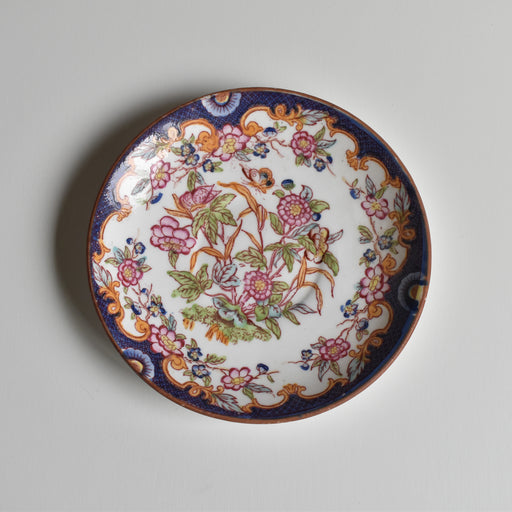 Sarreguemines窯のアンティークソーサー Minton柄217番です。 鮮やかな色使いで描かれたきめ細やかな花模様。 こちらはインドの花と蝶々がモチーフにされ、エスニックな雰囲気を感じさせます。 磁器の透き通る美しさと生命力溢れる花々に魅了されるシリーズです。 状態:絵柄が少し消えて...