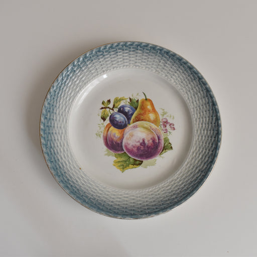 Saint-Amand窯のアンティークデザートプレートです。 パニエレリーフのリムに真ん中は美味しそうなフルーツが描かれています。 何種類のパターンがございますがこちらはプルーンや桃、西洋梨などが描かれています。 状態:カトラリー跡やプリントが少し無くなってる部分が見られますが、欠けやヒビはな...