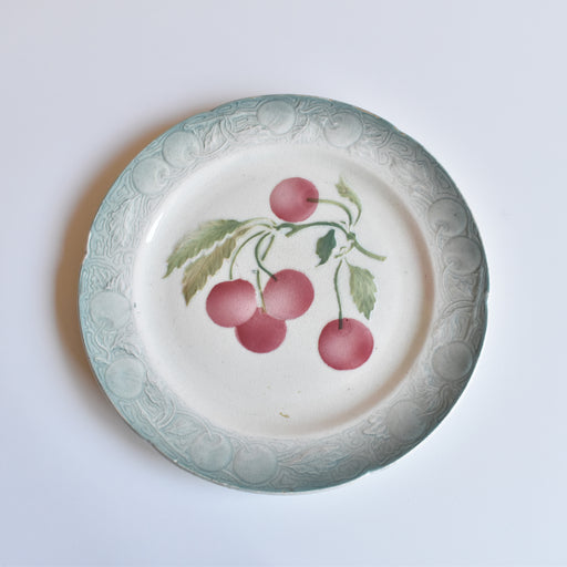 Saint Clement 窯のバルボティーヌ皿です。 心地よい立体感。さくらんぼや縁のデザイン、そして柔らかな色合いが魅力的です。 細やかな貫入も加わり、アンティークの風合いも素敵。 飾って楽しみにたくなる一品です。   状態:全体的に細やかな貫入が広がり、少しカトラリー跡が見られます。カケ...