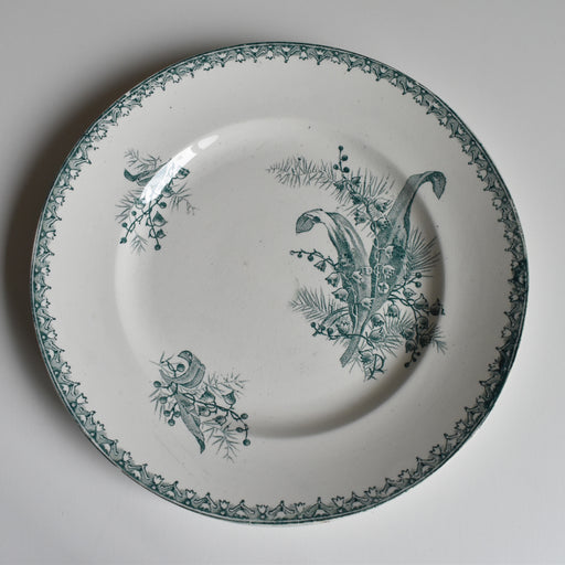 Brocante/蚤の市Saint-Amand窯のアンティークプレート Muguetシリーズです。 可愛い小さなスズランが並び、縁を彩ります。綺麗に整列している様子は、まるで手編みのレースのよう。 少し青みがかった緑色が白いプレートによく映えます。 鈴蘭の控えめな美しさを感じさせる素敵な一品です。 状態:全体に貫入が...