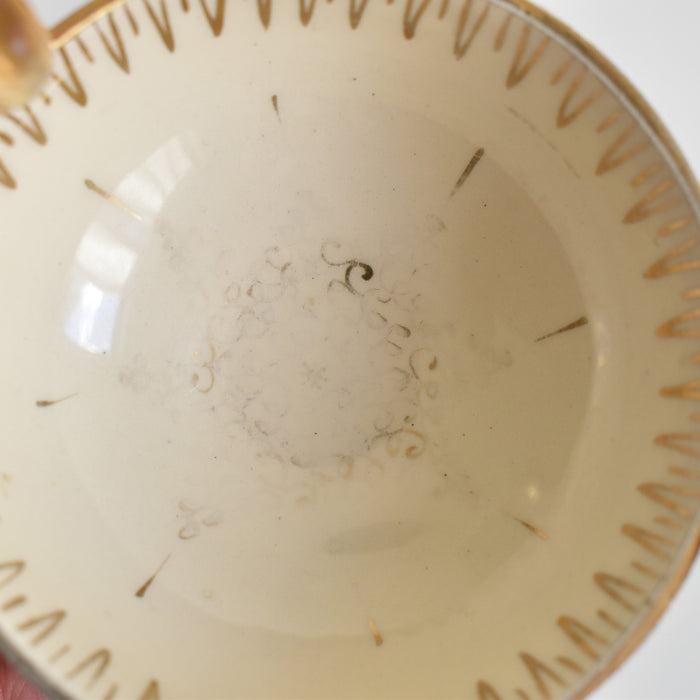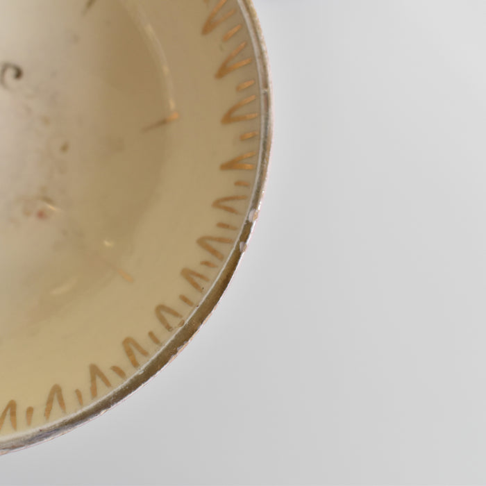 状態:口縁に複数の浅い欠けがあり、金彩が薄れている部分がございます。柔らかなヴィンテージの雰囲気をお楽しみいただけます。
