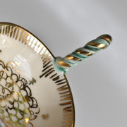 金彩で描かれたリズミカルな模様。ハンドペイントの躍動感が魅力の一つです。 仕舞い込まず飾って楽しみたくなる素敵なシリーズです。 ミニカップは食後のリカー用のカップです。アクセサリーを入れたりすると素敵です。