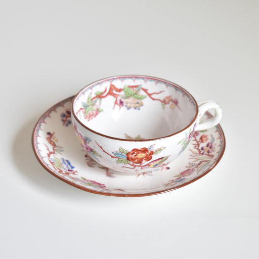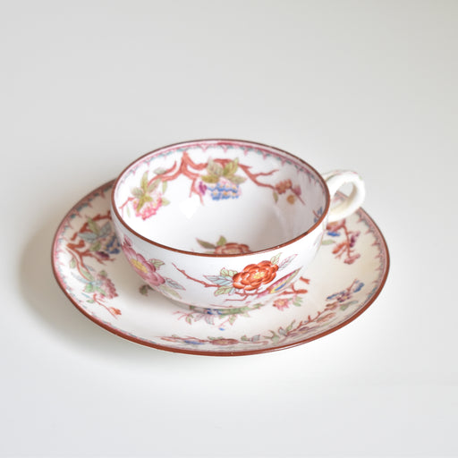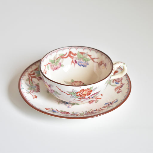 Brocante/蚤の市Sarreguemines窯のアンティークティーカップアンドソーサー Minton柄252番です。 鮮やかな色使いで描かれた花模様。トランスファーの上からハンドペイントで色が載せられ、きめ細やかな手仕事を感じます。 こちらは花とカッコウ(鳥)がモチーフに。ジャポニズムを感じさせるデザインです。...