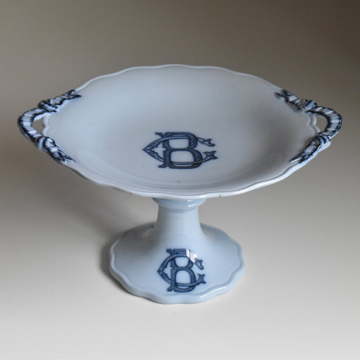 Brocante/蚤の市イギリスBROWN-WESTHEAD MOORE & CO窯のアンティークコンポティエです。 ブルーのプレートに、藍色の装飾が美しく溶け合います。 滑らかな見込み部分は、ゆったりとした曲線が優雅な印象を与えます。このまま飾るだけで素敵なインテリアに。アクセサリーを置いたり、果物を載せ...